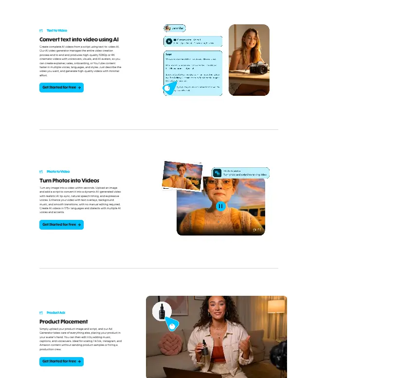 | Primary Functions | AI-powered video generator using avatars and voice synthesis |