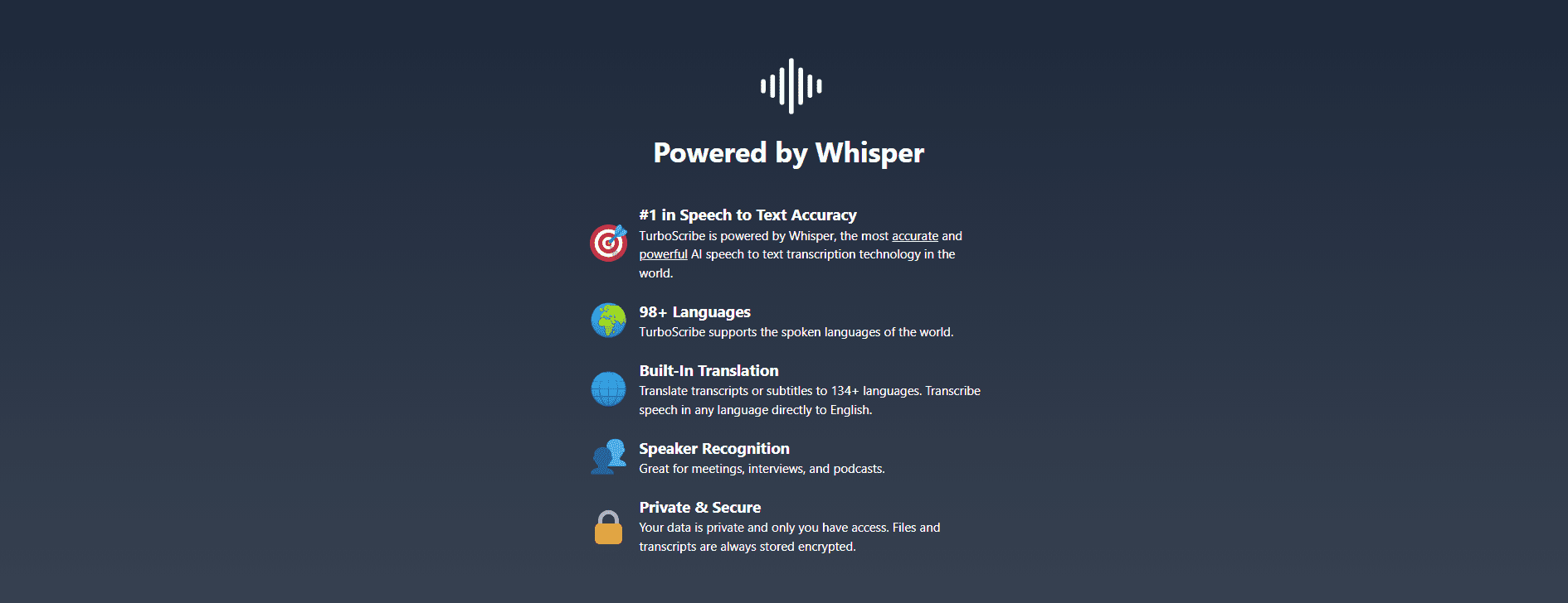 Accurate Transcriptions: Powered by modern AI technologies like Whisper, the platform offers perfect transcription across multiple languages and export formats.